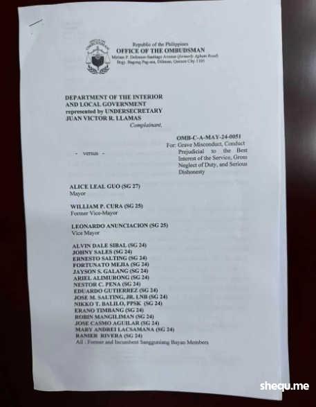 菲律宾内政部此前提出指控,称郭市长和其他地方官员犯有严重不当行为、严重不诚实、严重玩忽职守以及损害服务最大利益的行为。